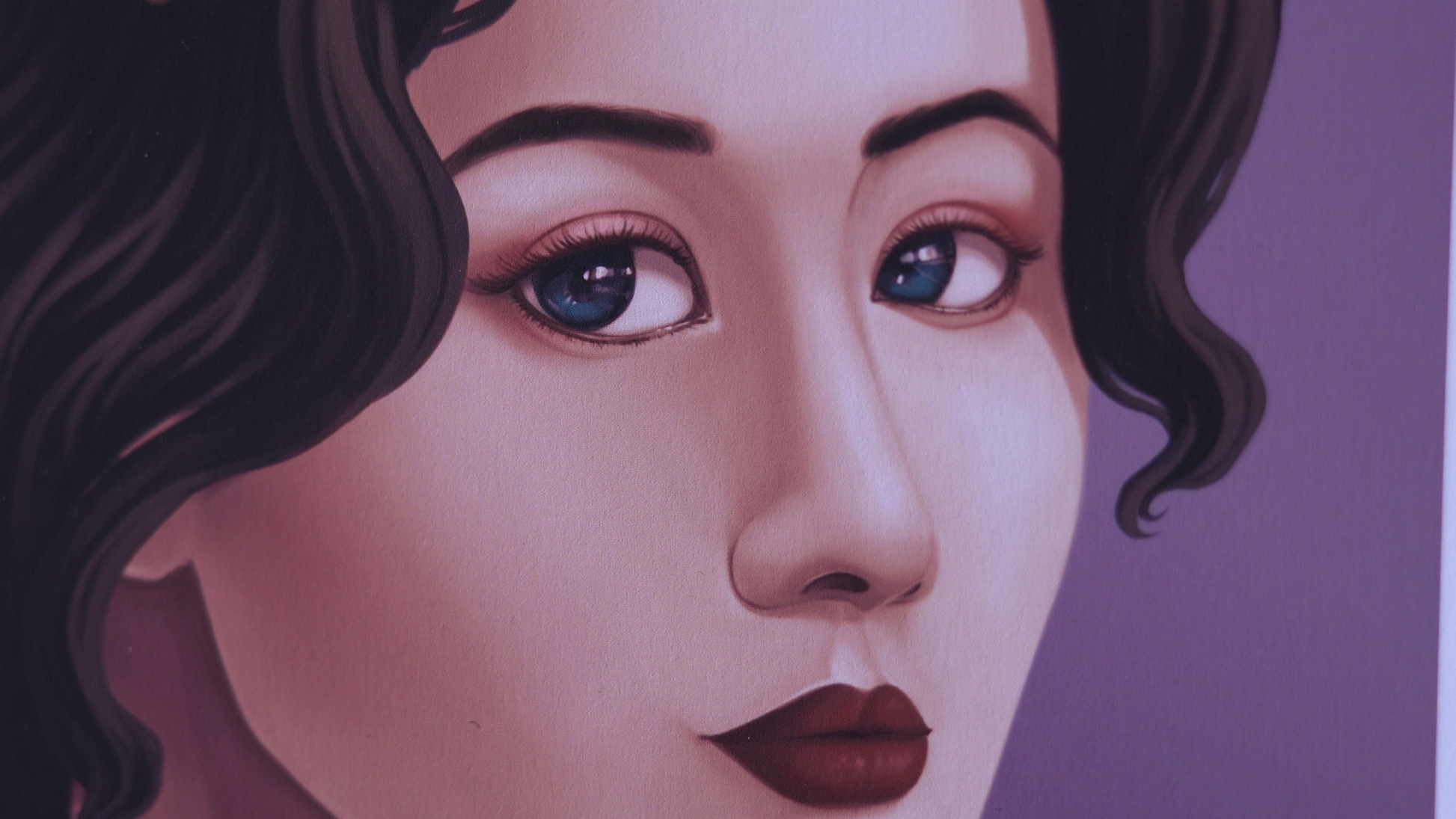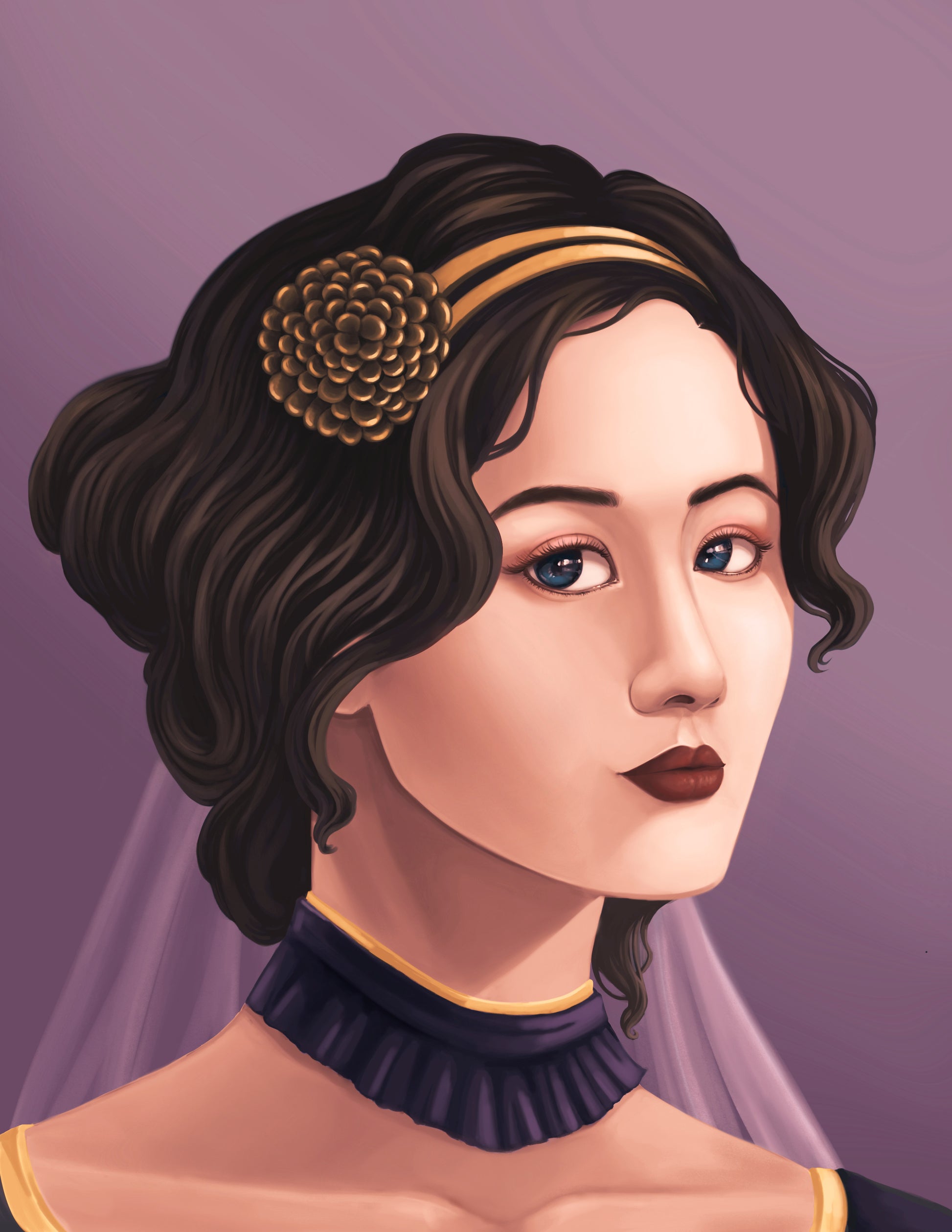 These three pieces of artwork were painstakingly made with love by a real human being as part of an art commission. No AI-generated garbage involved! The instructions that I provided to the artist were to make the pieces "look realistic, but also kinda like anime characters". I think they turned out great! From left to right, the prints above depict Alan Turing, Ada Lovelace, and Kurt Gödel. Here's a closeup of the Ada Lovelace print: